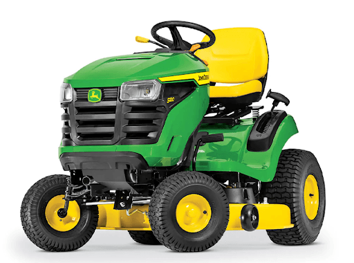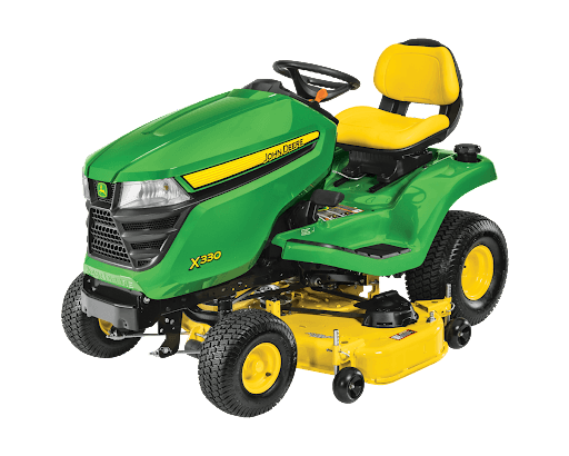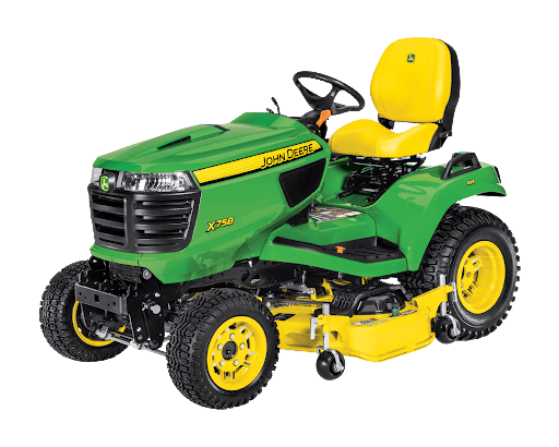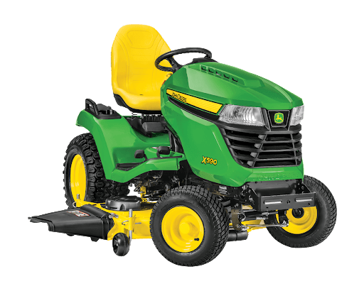 John Deere ride-on mowers, called lawn tractors, run a huge range of models, from the very basic and reliable E100 Series to the fully optioned and versatile X700 Series. If all you have is a small lawn and just want to keep the grass looking nice, then the E100 Series fits nicely in your plans. But if those plans involve tackling things like building up new flower beds, installing landscaping features or even hauling loads of mulch back and forth, then the X500 or X700 Series and their ability to attach and run implements are for you.